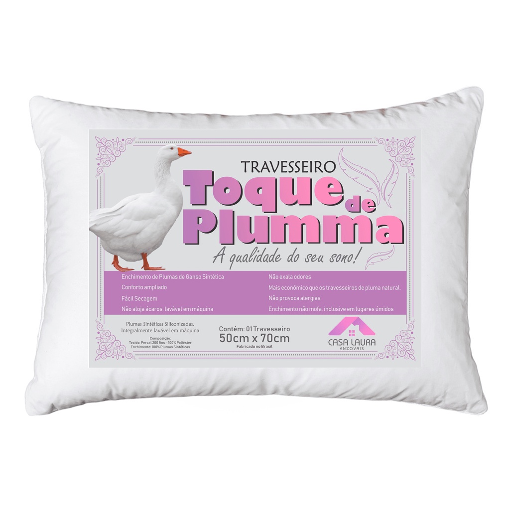 Travesseiro pluma de ganso macio confortavél antialérgico 70x50