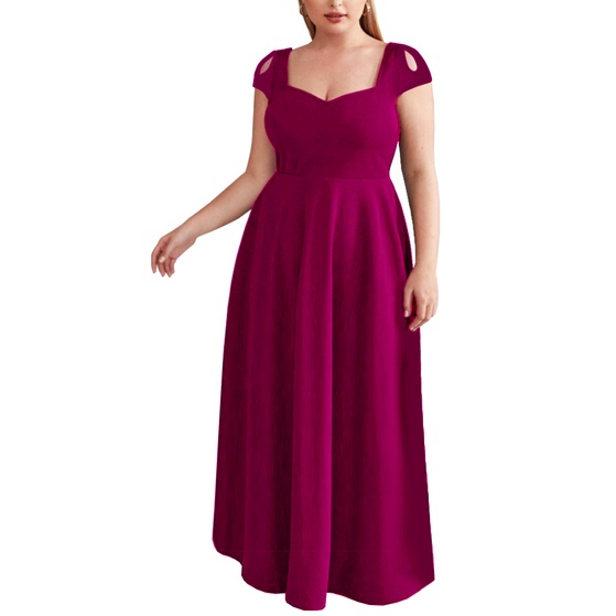 Vestido Longo Plus Size Com Decote Em Tule, Manga Solta Ps85