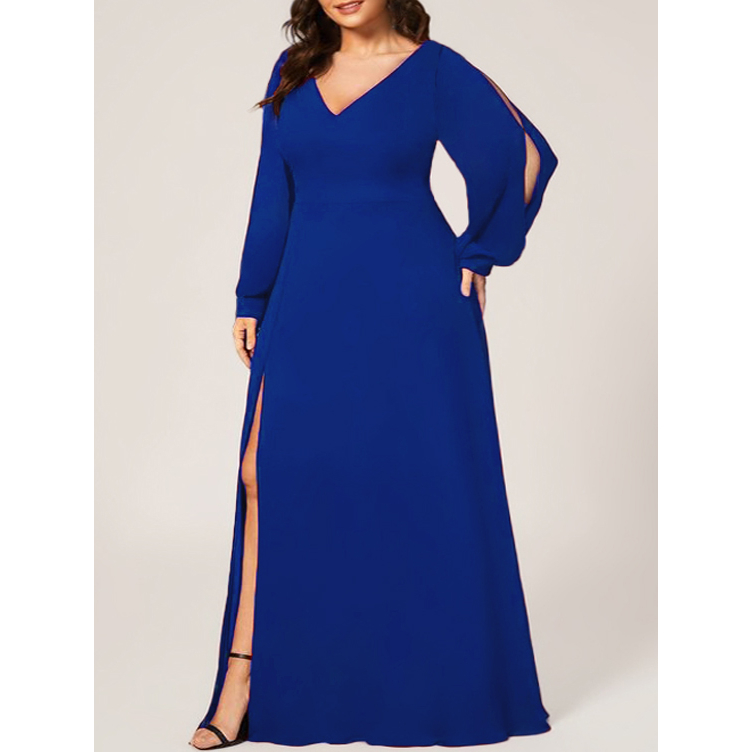 Vestido Feminino Manga Única Plus Size Curve Longo Com Fenda e Abertura Na Manga Elegante