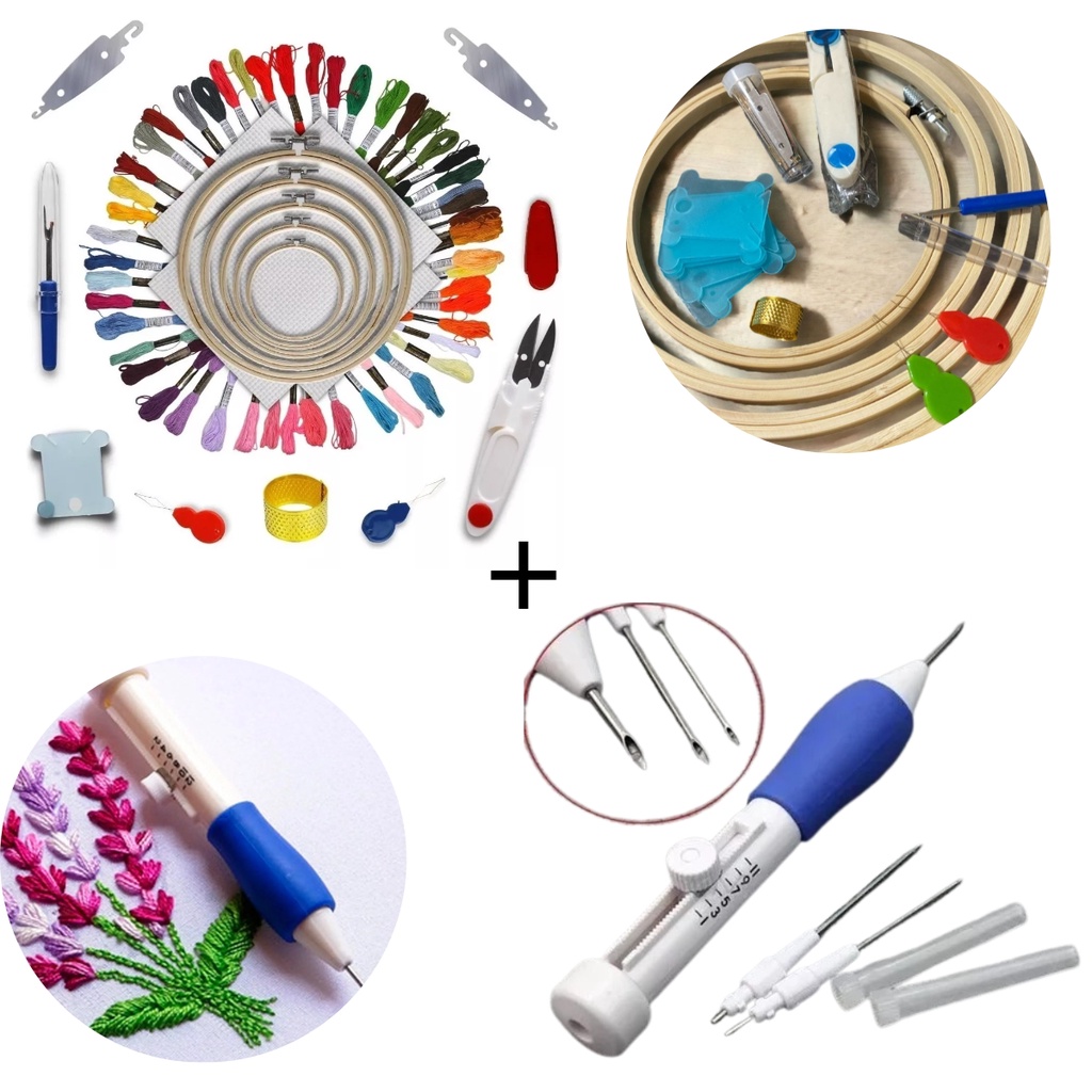Kit Bordado Para Iniciantes + Kit Ponto Russo + 50 Cores De Linha + Bastidores de Bambu