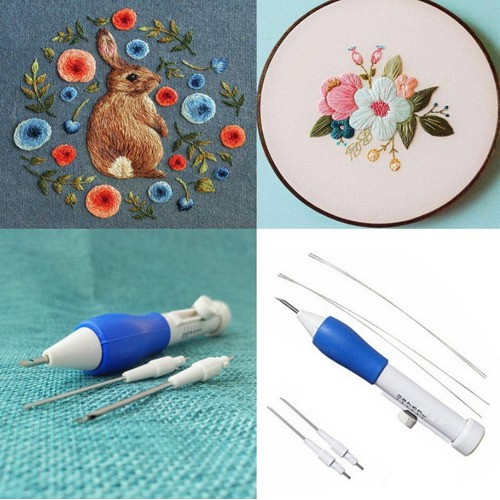 Kit Completo Agulha Mágica Caneta Para Bordar Ponto Russo