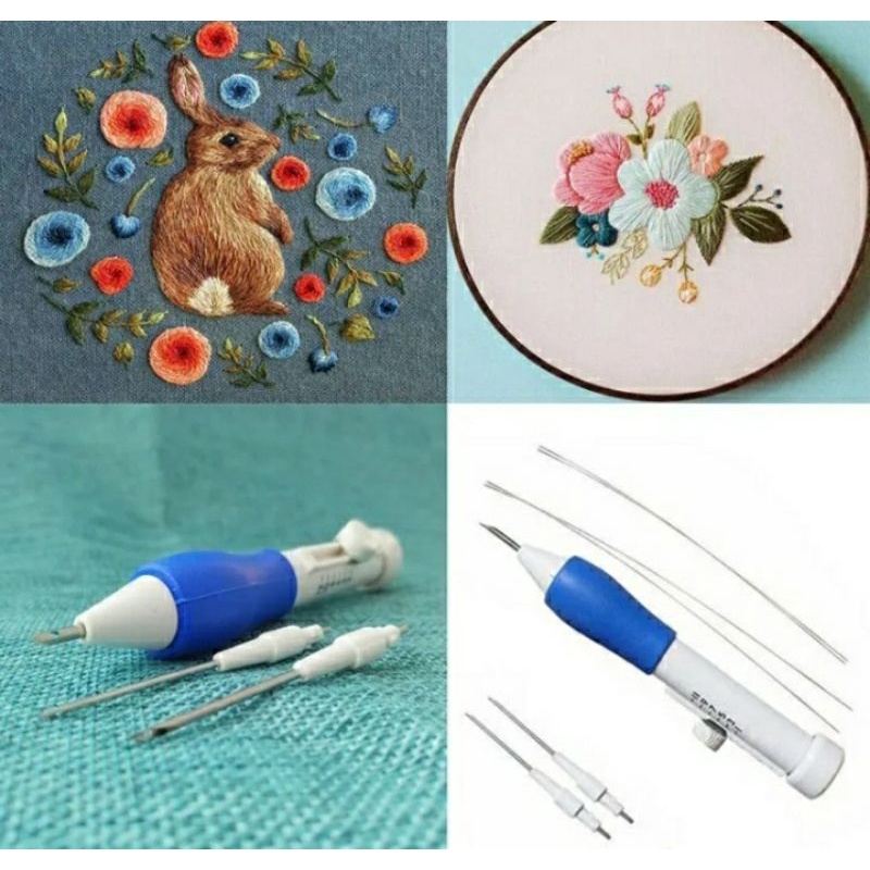 Kit Agulha Magica Caneta Para Bordar Ponto Russo