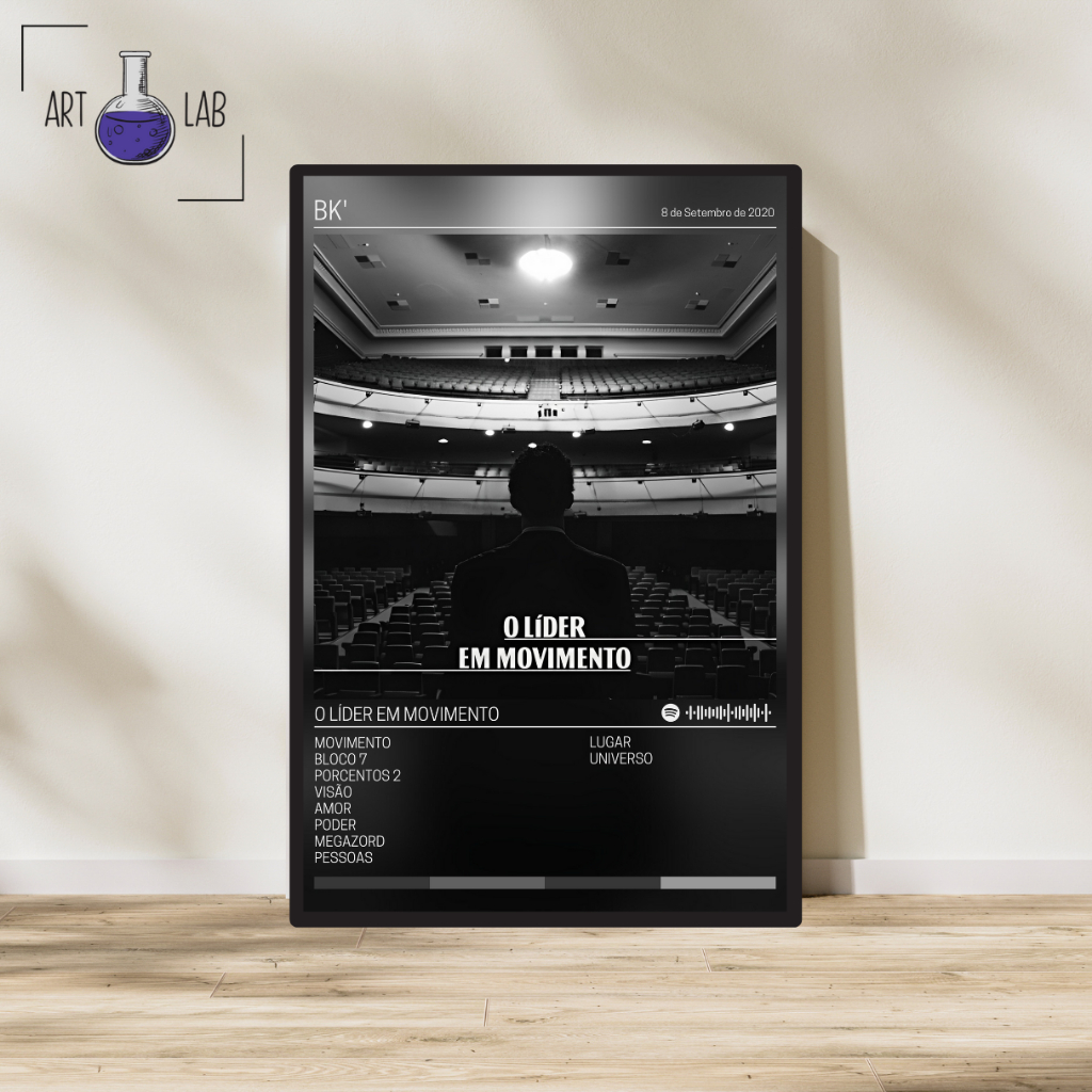 Quadro decorativo álbum BK O LÍDER EM MOVIMENTO Spotify moldura e vidro