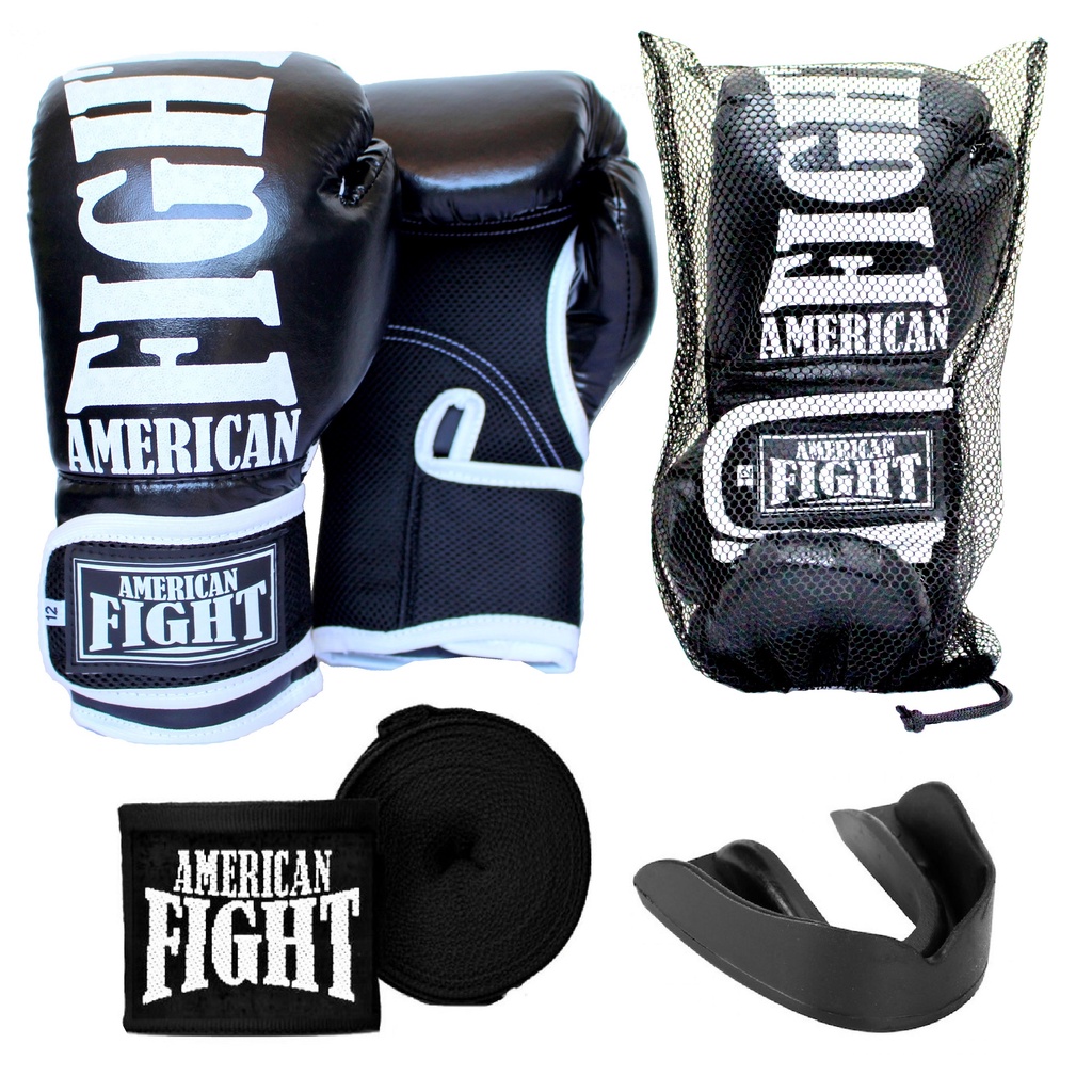 Kit Boxe Muay Thai Luva Bandagem Bucal American Fight - Preto