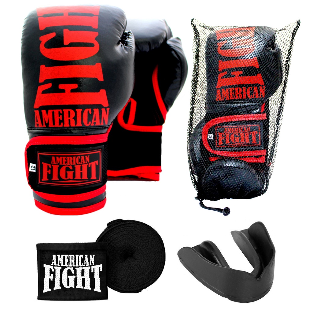 Kit Boxe Muay Thai Luva Bandagem Bucal American Fight - Vermelho