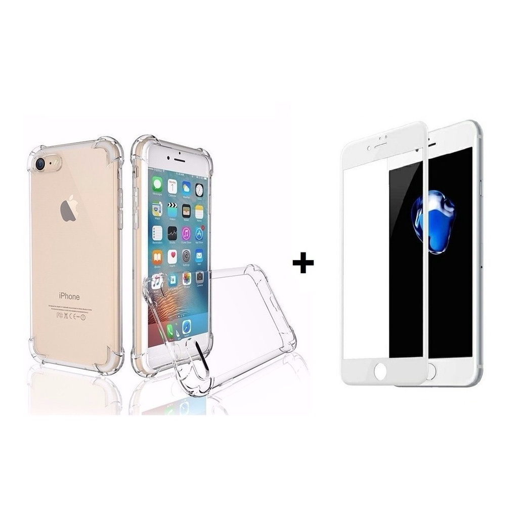Kit 2em1 Para iPhone 6 / 6s / 7 / 8 - Capinha Anti-Impacto + Película De Vidro 3D Full Cover