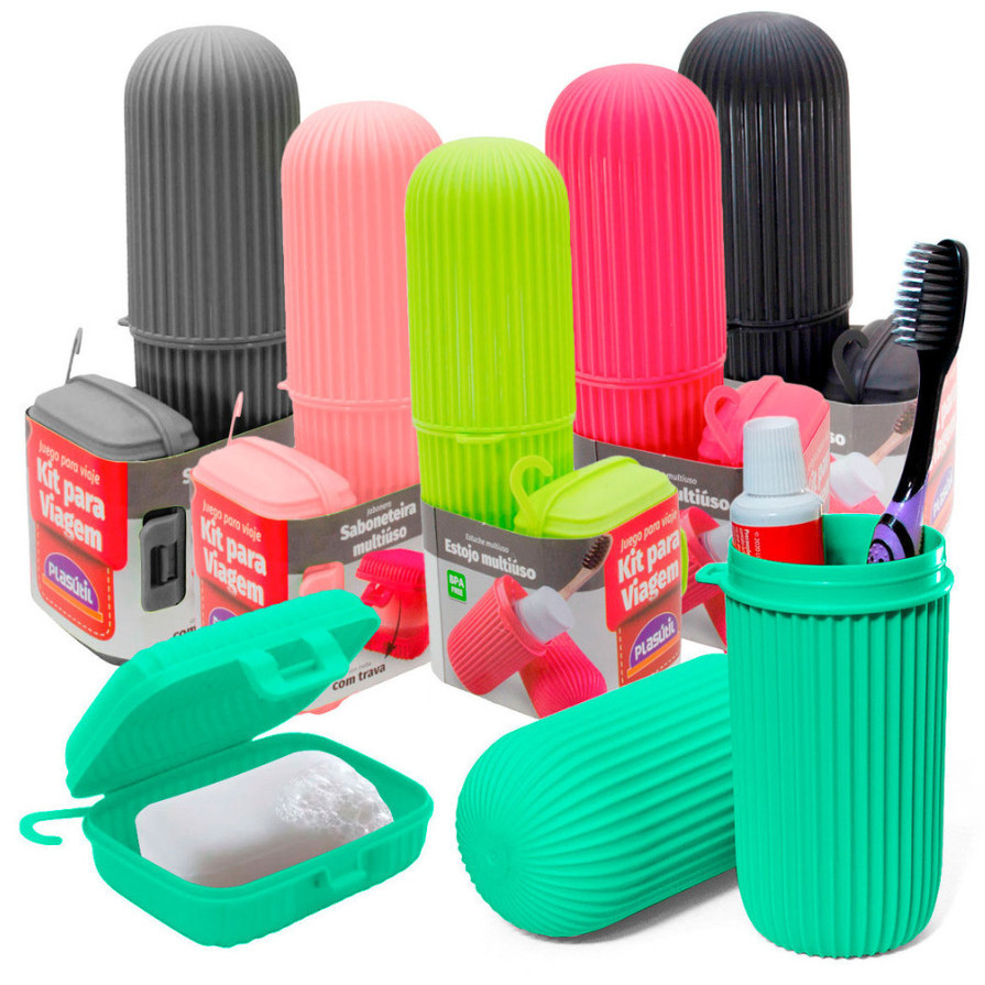 Kit Para Viagem Porta Escova de Dente Multiuso e Saboneteira Multiuso Plasútil
