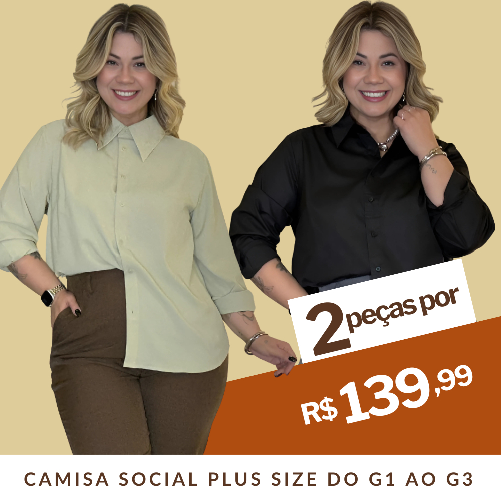 Kit 2 Peças Camisa Social Feminina Plus Size Tamanho do G1 ao G3 Manga Longa Tricoline - Envio Imediato