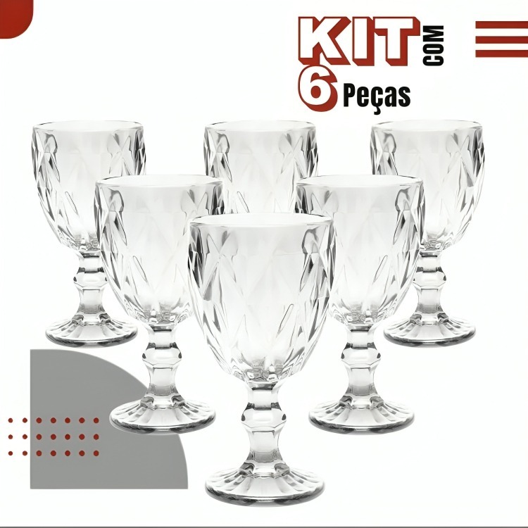 Kit 6 Taças Diamond Vidro Transparente Para Vinho Luxo Resistente