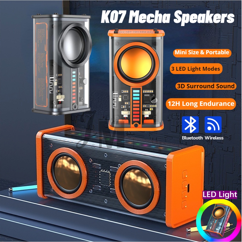 K07 Mecha Speakers Shake The Bass Transparent Wireless Bluetooth Stereo Surround Alto-Falantes De Áudio