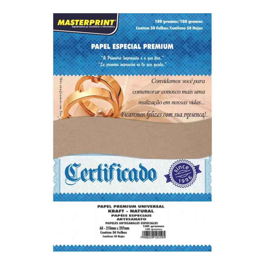 Papel Kraft Folha Natural Artesanato 180g A4 - Masterprint