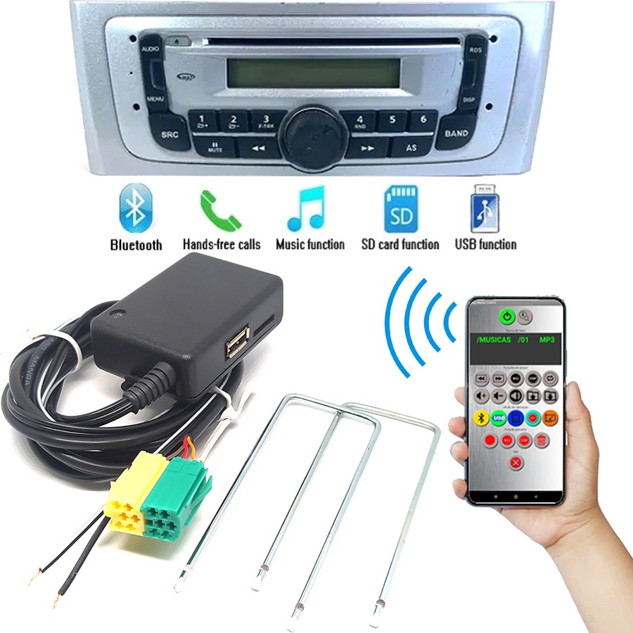 Adaptador Bluetooth do rádio original FIAT Punto entrada pendrive USB MicroSD com microfone para chamadas e app Android para controle remoto