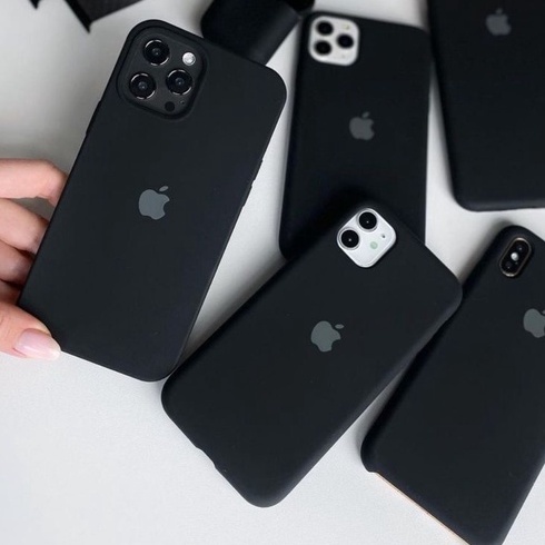 Capa Case Capinha Preta Iphone Silicone Aveludada Protetora com Logo 6 6s 7 8 Plus 11 12 13 Mini Pro X XR XS Max SE 2020 Preto Black