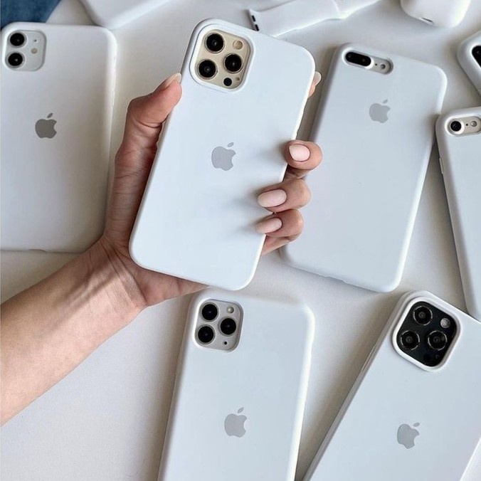 Capa Case Capinha Iphone Silicone Aveludada Protetora com Logo 5 6 7 8 Plus 11 12 13 Mini Pro Max 14 Plus Pro Max X XR XS Max SE 2020 Branco Branca White