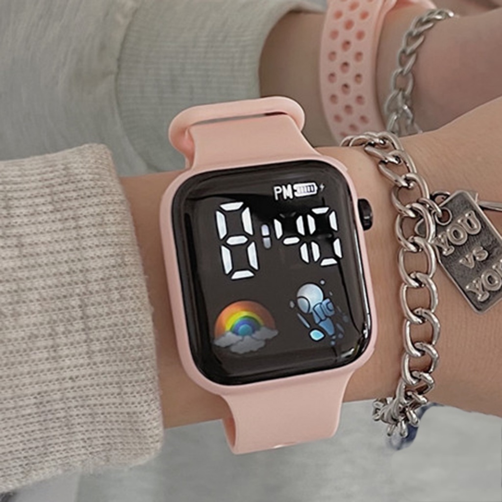 Relógio Eletrônico Estudantil Astronauta LED Quadrado Pulseira Eletrônica De silicone De Moda