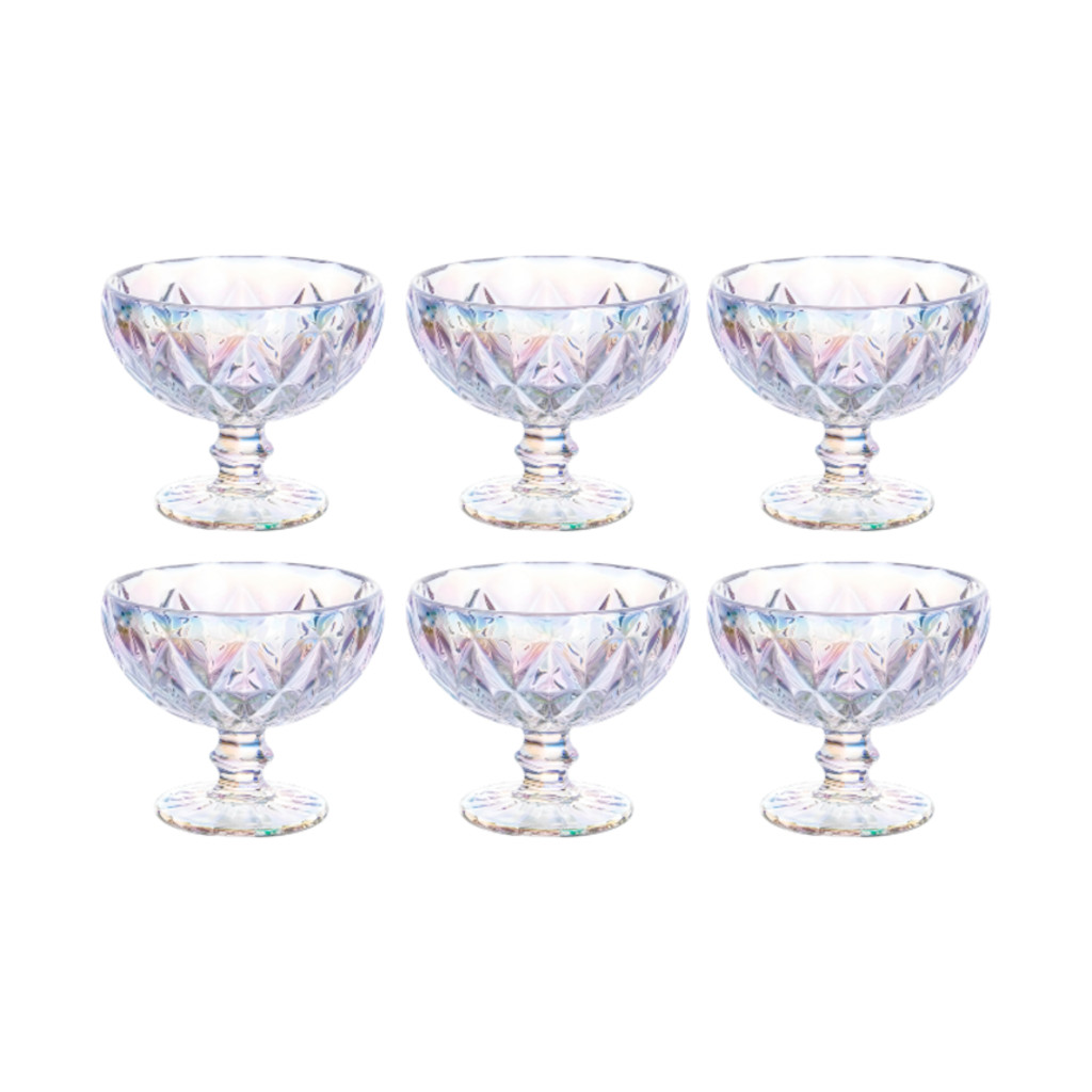 Jogo 6 Taça Sobremesa Vidro Diamond Doce Sorvete Transparente Clear Mousse Fruta Luxo Pudim Bala Kit