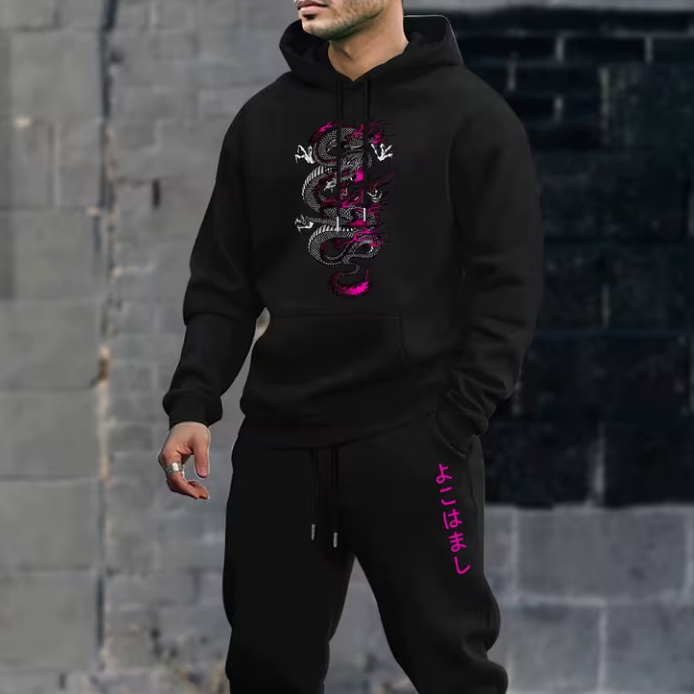 Kit Conjunto Moletom Canguru e Calça Confortavel Streetwear Dragao Japao Yokohama Oriental Y2K