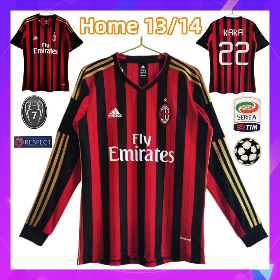 Retro futebol Jersey AC Milan 13/14 Camisa dos homens locais versão Home Kaka #22 de manga comprida de manga curta Jersey 2013 201411 JAUC