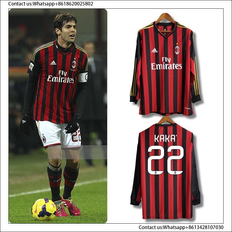 13-14 Camisa De Futebol Retro Masculino Manga Longa AC MILAN Home KAKA Red/Black 2013 2014