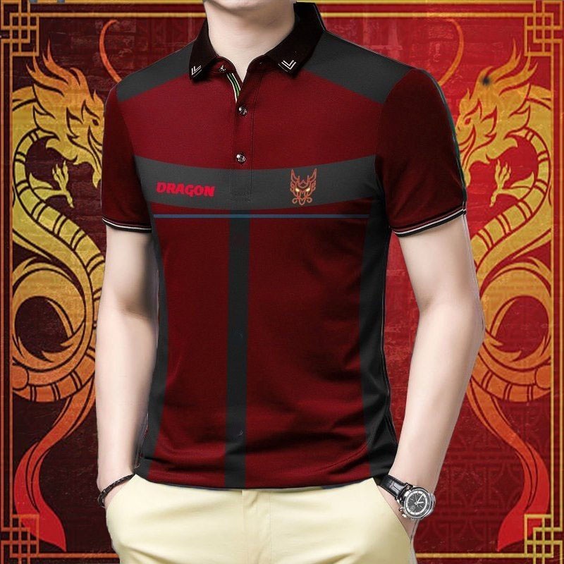 Novo Estilo de Camisa Polo Casual Masculina de Manga Curta Slim-Fit Cor Sólida Resistente ao Encolhimento Rápido @