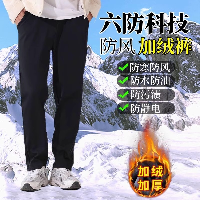 2024 outono inverno mais veludo masculino preto M-5XL grosso solto em linha reta tamanho grande à prova de vento imperme
