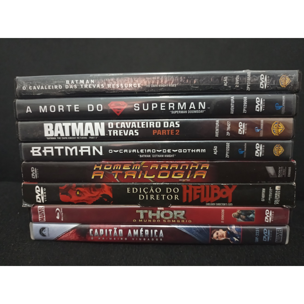 Filmes de herois : Trilogia Homem-Aranha, A Morte do Superman, Batman - O Cavaleiro das Trevas Ressurge, Hellboy-Edição do Diretor, Batman-O Cavaleiro das Trevas Parte 2, Capitão América-O Primeiro Vingador, Batman-O Cavaleiro de Gotham,Thor Mundo Sombrio