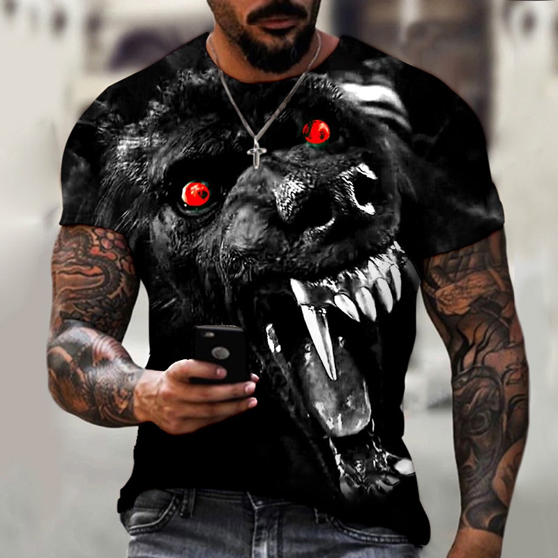Besta e lobo impressão 3D série preta nova verão dos homens T-shirt de manga curta oversized top fashion street T-shirt O-neck