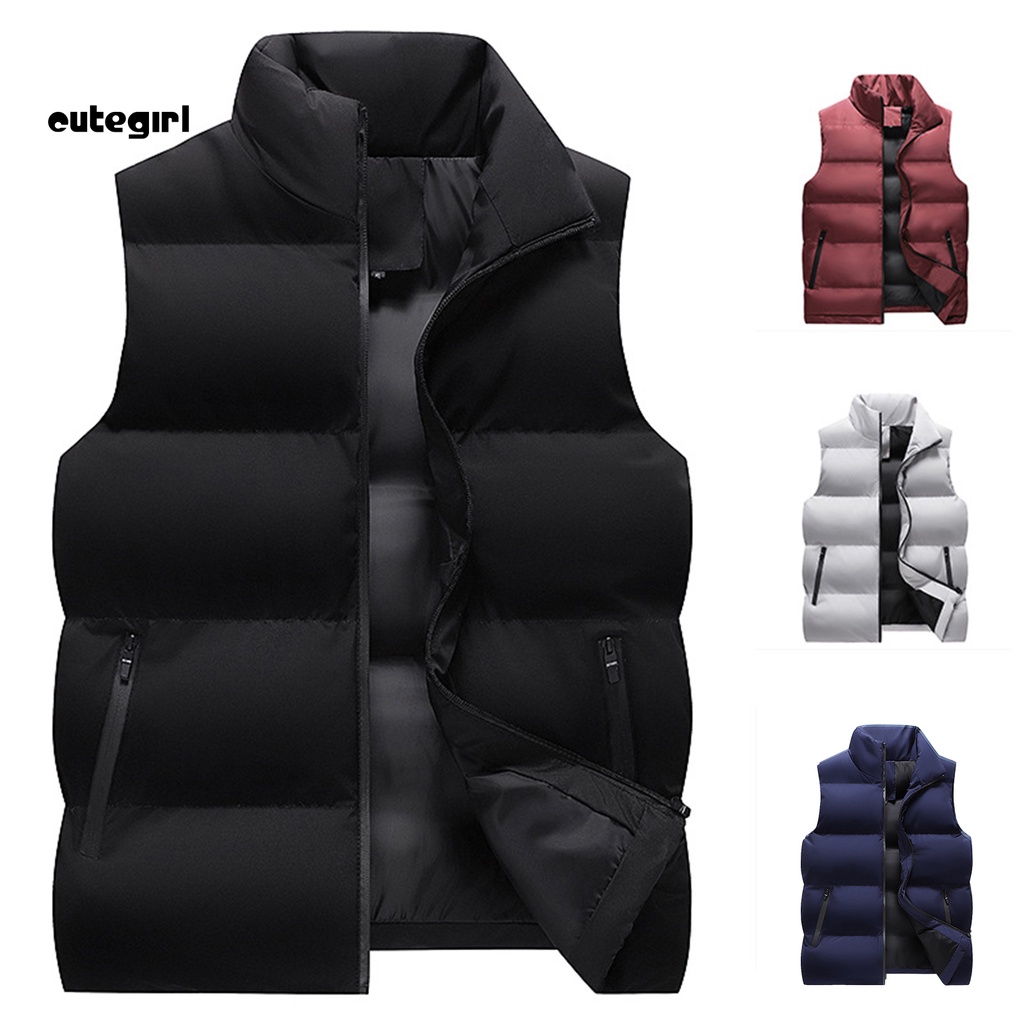 CUM-Men . Colete De Inverno Espesso Acolchoado À Prova De Vento Colarinho Sem Mangas Proteção Do Pescoço Bolsos Com Zíper