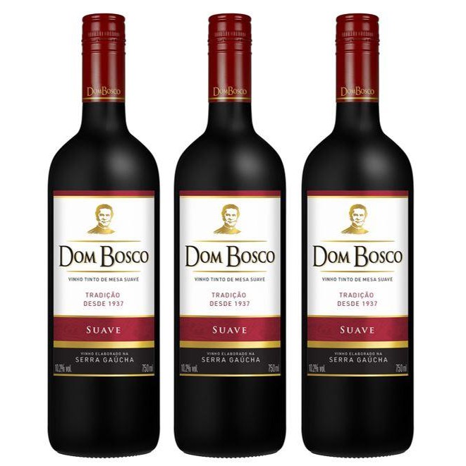KIT VINHO DOM BOSCO TINTO SUAVE 750ml 3UN