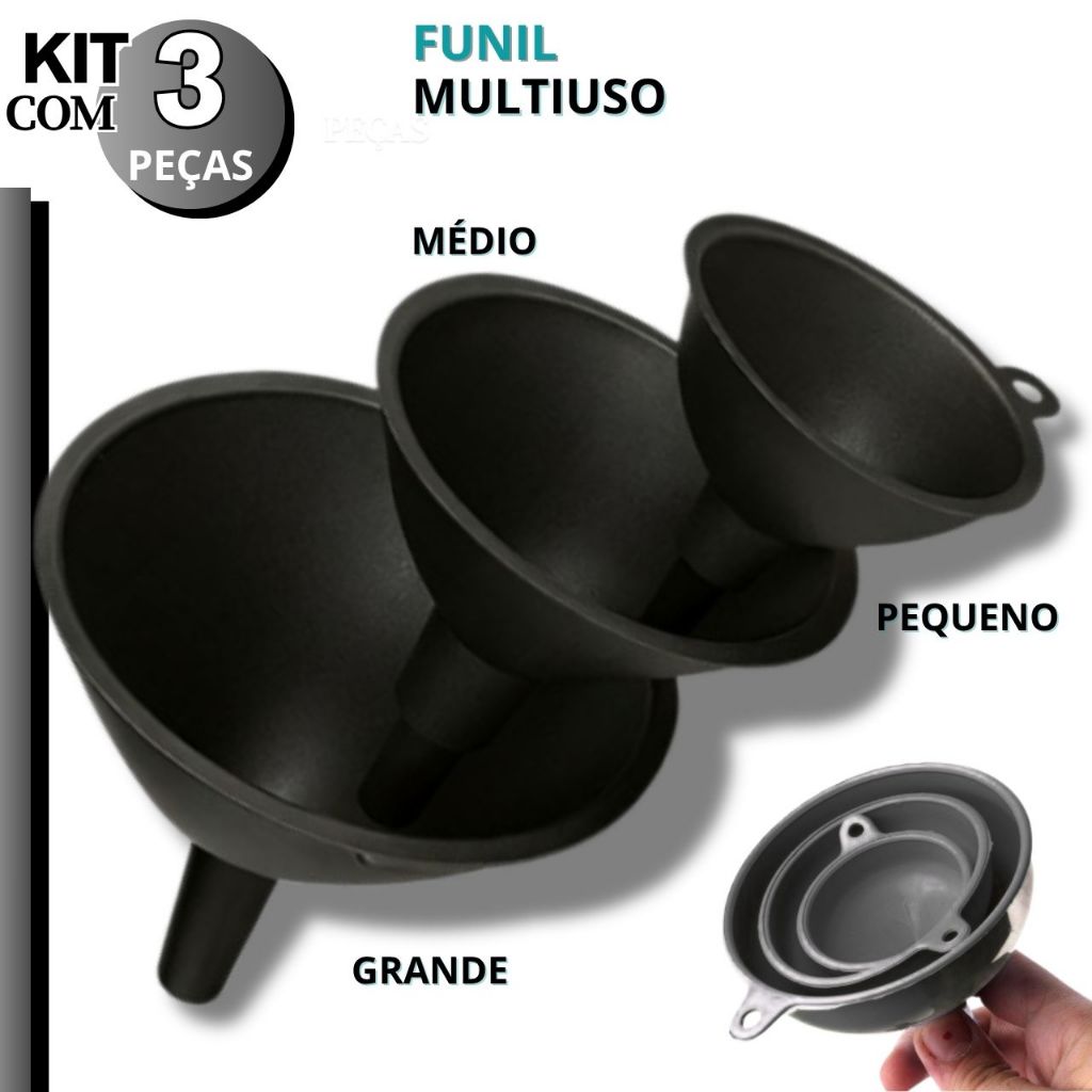 Kit 3 Funil Plástico Cozinha Multiuso Oficina Artesanato Cozinha Grande Médio Pequeno