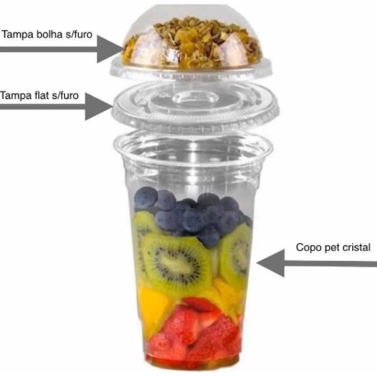Copo Embalagem com Tampa Bolha com Furo Para Doces Salada Pipoca Bolos 330ml com 50 unidades