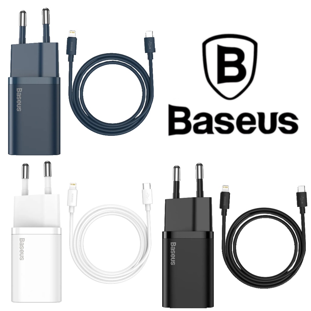 Carregador Rápido para iPhone Baseus 20w Super Si Quick Charger - com cabo Type-C para Lightning 1m - Preto, Branco e Azul