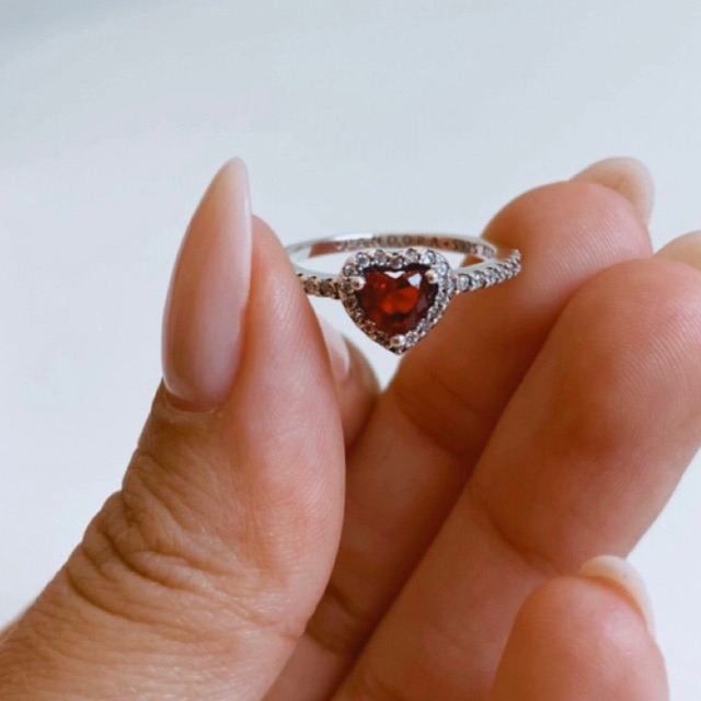Anel Pandora Coração Vermelho Elevado - Prata 925 + Zircônias