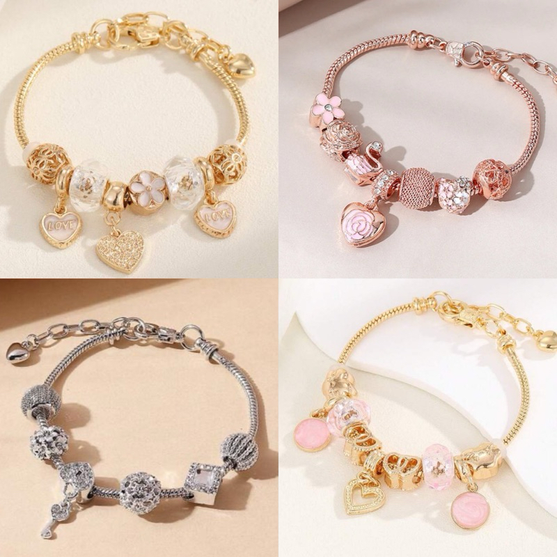 Pulseira Pandora Vivara Charmes Berloques da Moda Bracelete Dourada Prata Rose Gold Mulheres shp32