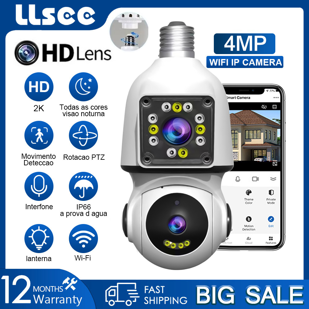 LLSEE 4MP 2K Lâmpada De Lente Dupla E27 Câmera CCTV 360 Graus , mini De Vigilância Interna Sem Fio , Inclinação Da Panela , Alarme De Rastreamento Automático , Comunicação Bidirecional