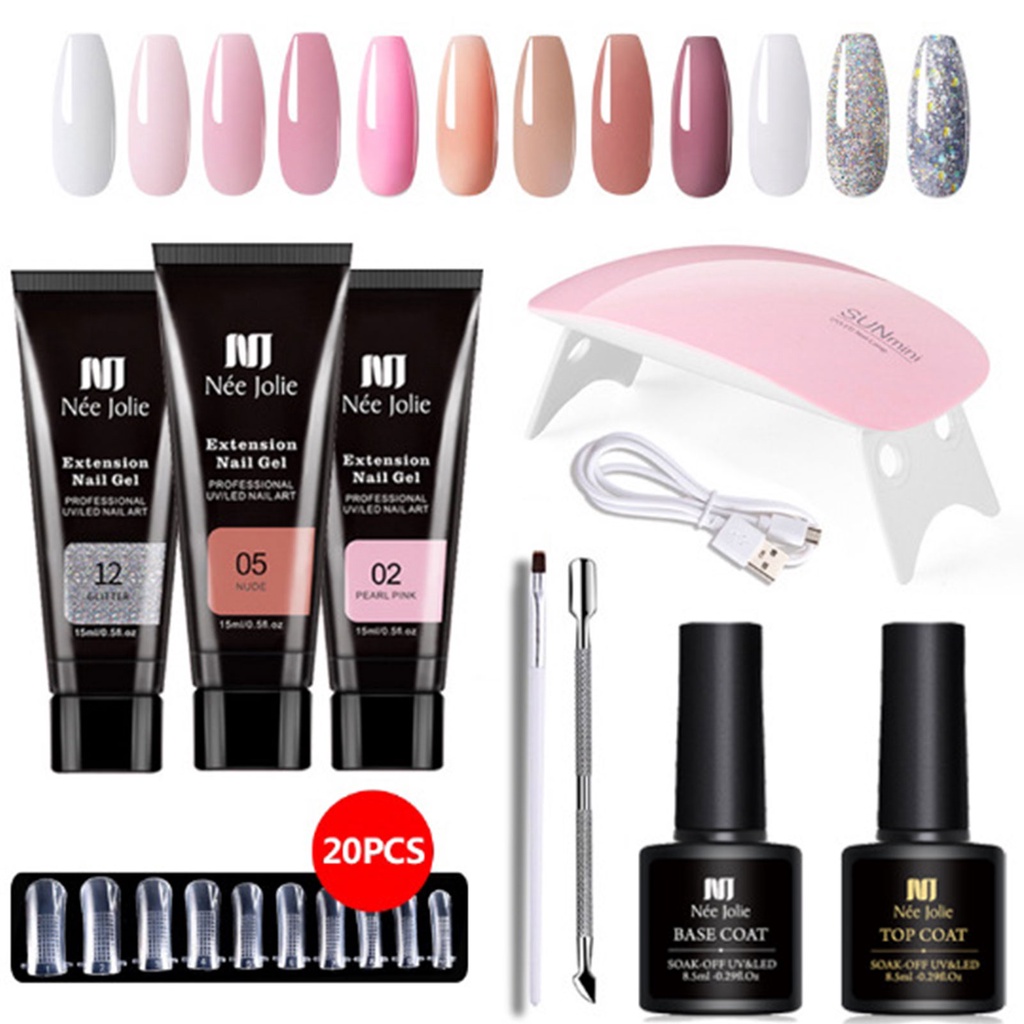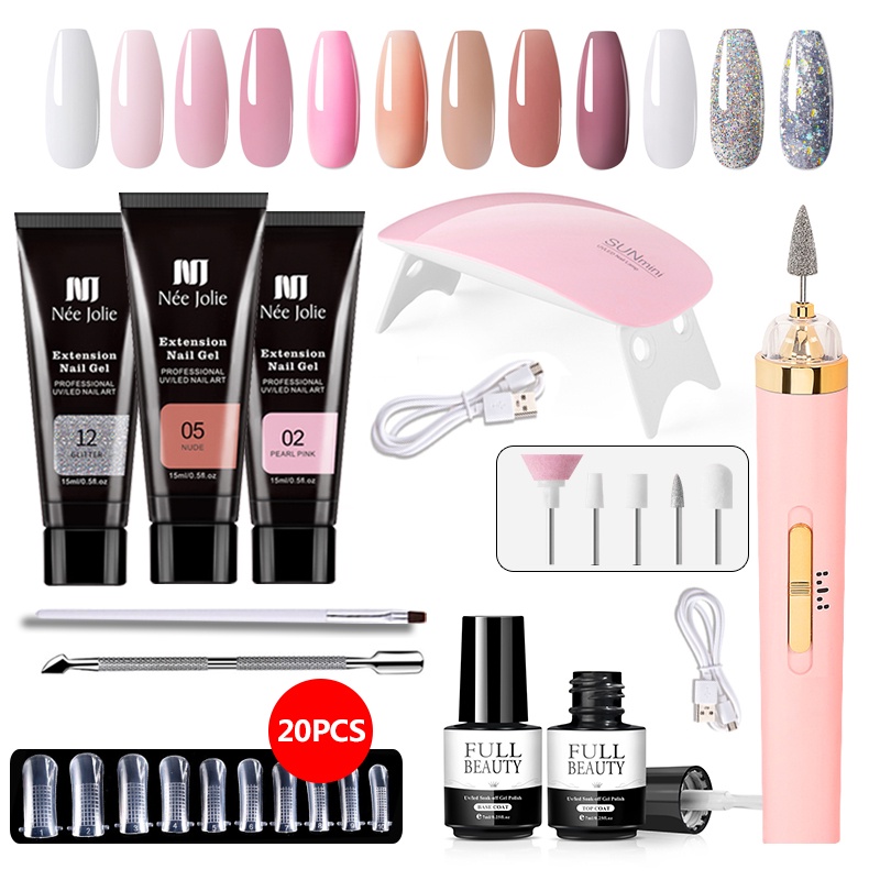 Limegirl 9 Pçs / Set Poli Kit De Gel De Unhas Com Lâmpada Uv Para Conjunto De Extensão Da Broca Do Prego Manicure
