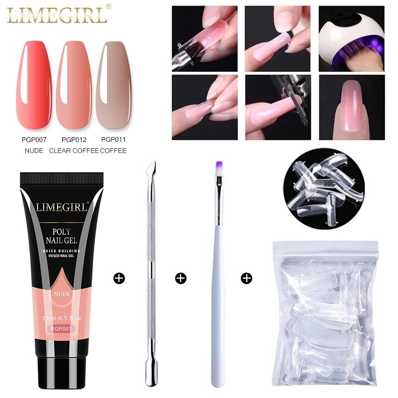 Kit unha de gel completo profissional Com 15 ml Poligel Limegirl Gel Transparente Cor Com Ferramenta De Unha polygel Cabine Uv Para Extensão De Unhas poligel