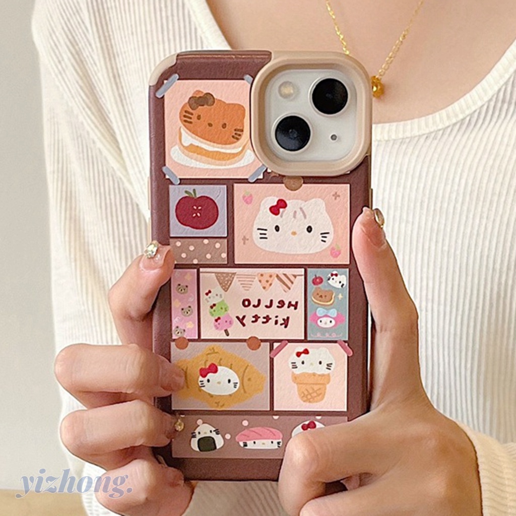 Para O iPhone 15 Pro Max 11 13 14 12 Bolo De Gelado Hello Kitty Dessert À Prova De Choque Caixa De Couro De PU TPU Macia Capa Protetora Anti-Riscos Queda
