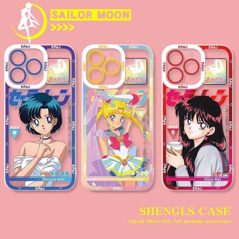Estojo Para iphone 14 Pro Max 11 12 13 Angel Eyes Crystal Anime Sailor Moon Tsukino Usagi Soft Clear Transparent Square TPU Proteção Total À Prova De Choque Capa Protetora Da Câmera