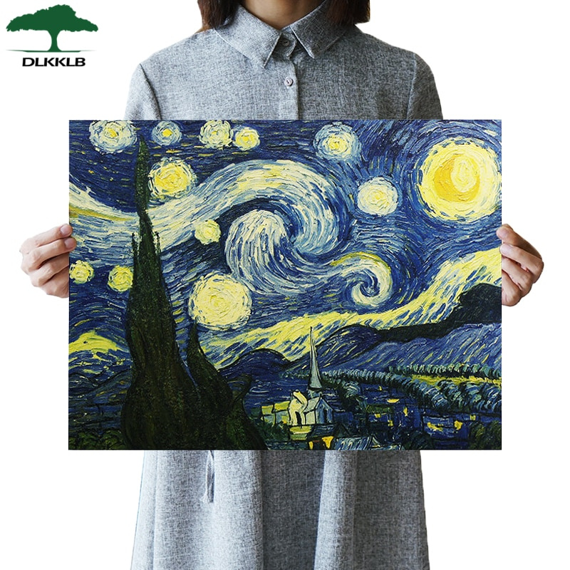 Van Gogh Impressão Mestre Pintura De Peças Céu Estrelado Art Papel Poster Bar Café Casa Adesivo De Parede Decorativo Adornment