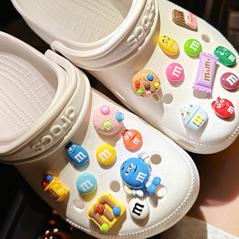 111 Pcs/Set M & Chocolate Candy Brilhante Sorvete De Feijão Arco-Íris Chupa-Jibz Conjunto Croc Shoe Accessory Pins