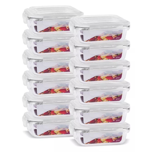 Kit 10 Potes de Vidro Hermético com Tampa 370 ML Retangular Marmitas Multiuso para Geladeira Forno