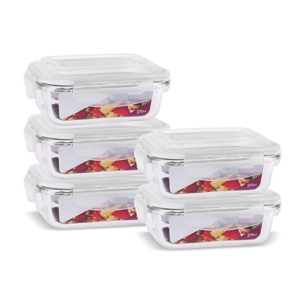 Kit 5 Potes de Vidro 370 ml Hermético Marmita Fit com Tampa 4 Travas