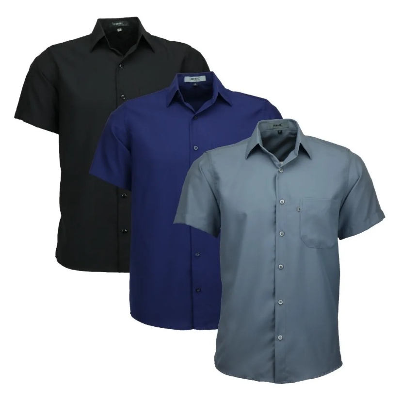 Kit 3 Camisas Amil Plus Size Microleve Manga Curta Não Amassa Super Fresca