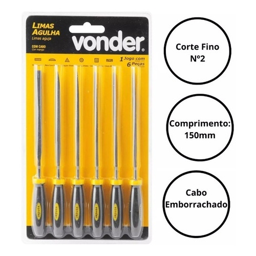 Jogo Lima Agulha 150mm Cabo Emborrachado Com 6 Peças 7gm Eda