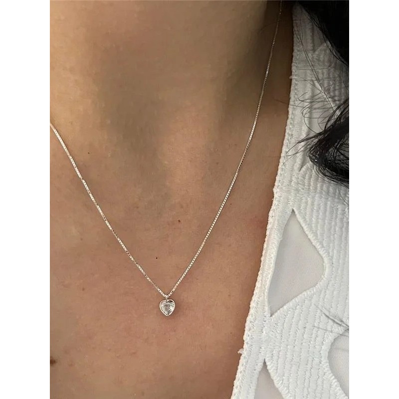 Colar gargantilha em Prata Original 925 com pingente ponto de luz coração