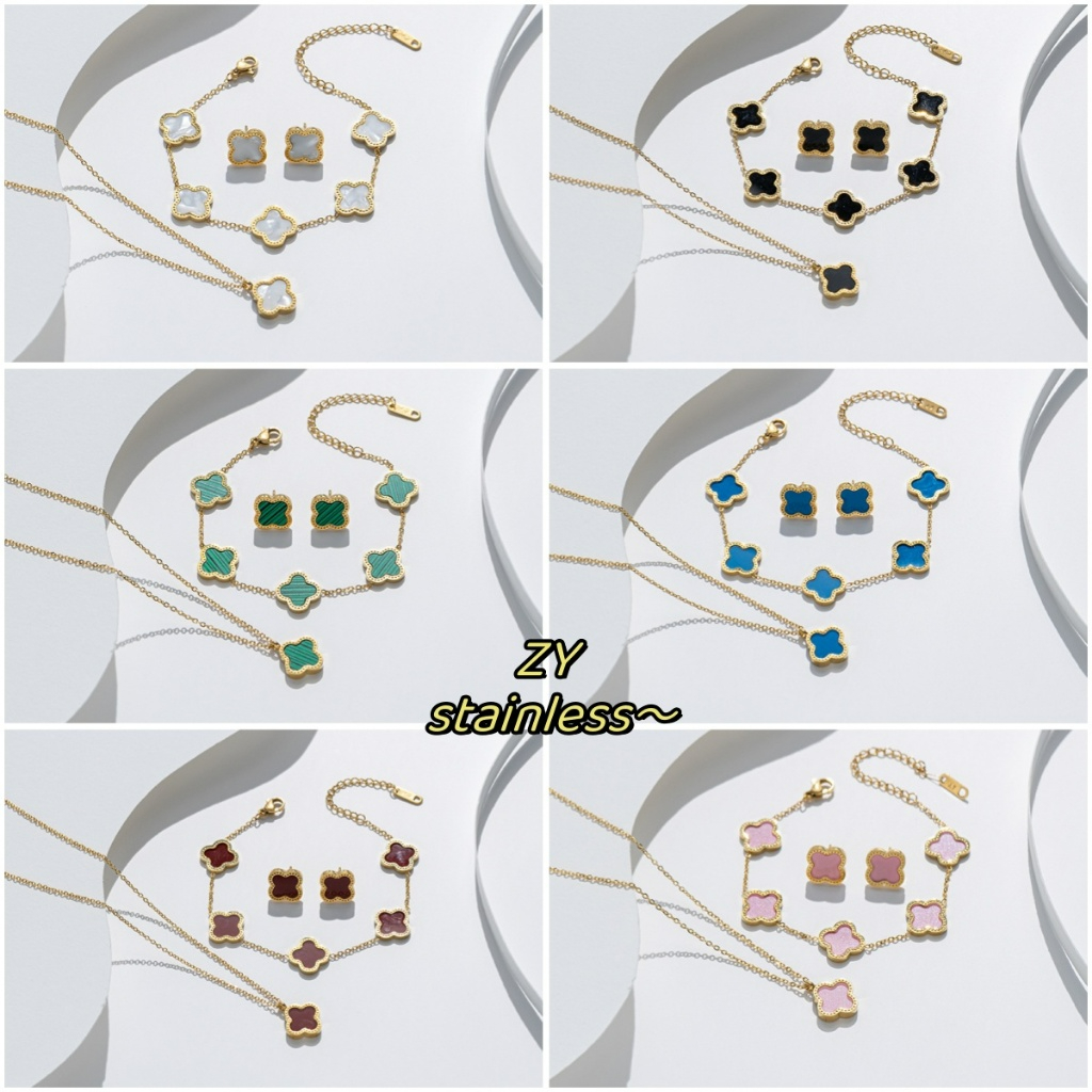 Conjunto Ouro Aço Inoxidável Colar Quatro Folhas De Brincos Pulseira Fritillaria Jóias Incolores Para Mulheres