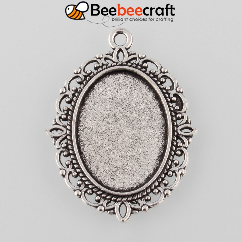 Beebeecraft 10 ~ 50 pc Pingente De Liga De Prata Antiga Estilo Tibetano Oval Ajustes De Cabochon Sem Cádmio E Bandeja Chumbo : 25x18mm 40x30x2mm Furo : 2mm