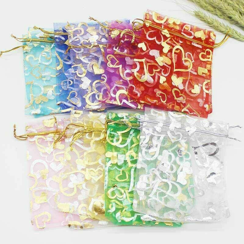 50Pcs Bolsas De Presente De Organza Com Corações Amor Para Lembrança De Festa De Casamento/Doces