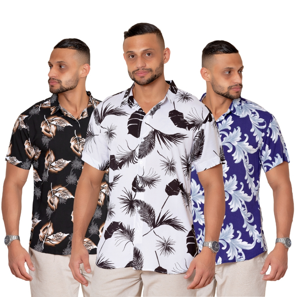 kit 3 Camisa Flor Masculina Social Floral Manga Curta Estampada